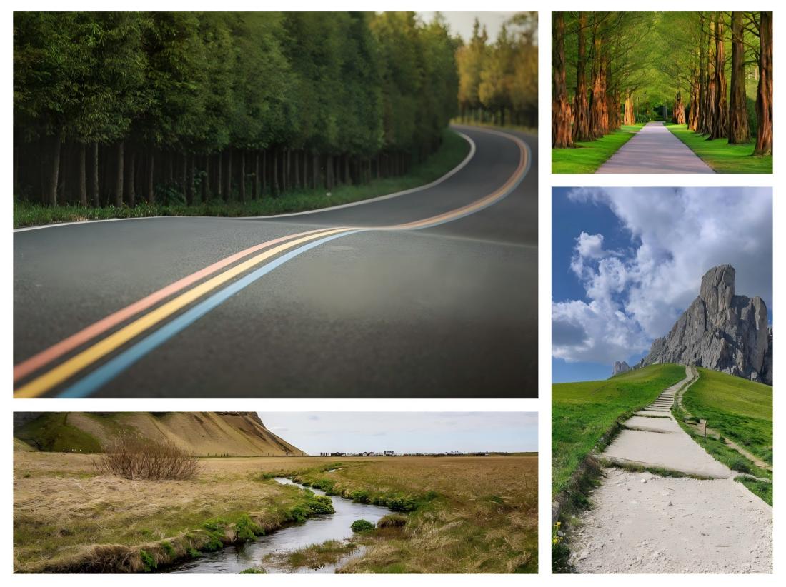 Some man-made leading lines, such as roads, paths, embankments, bridges, fences, field ridges, and steps, are also commonly used lines in landscape photography.